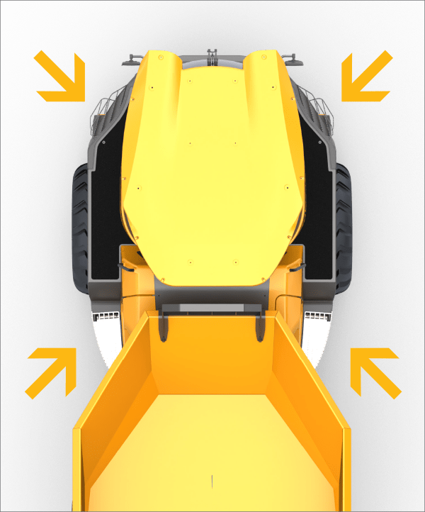 La nostra sfida è stata quella di fornire un accesso illimitato al Revotruck senza compromettere la sicurezza e l’ergonomia, come avviene invece con i dumper attuali. Abbiamo affrontato questa sfida progettando il telaio intorno alla cabina, con un ampio accesso a ogni angolo della postazione dell’operatore.
